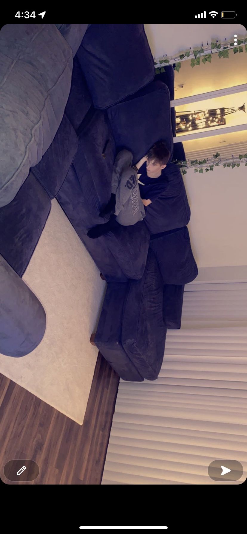 Beautiful dark navy sectional with pullout bed! Pet friendly but I did clean very very often I’m bit of a clean freak! Comes apart for easy transportation.