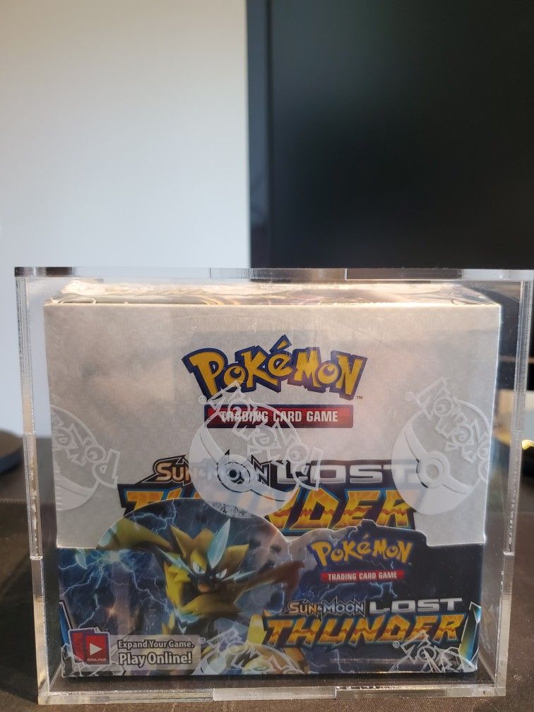 I have a Pokemon TCG Lost Thunder Booster Box from the Sun and Moon era. It is in great condition and is in an case. I am not looking for any trades.