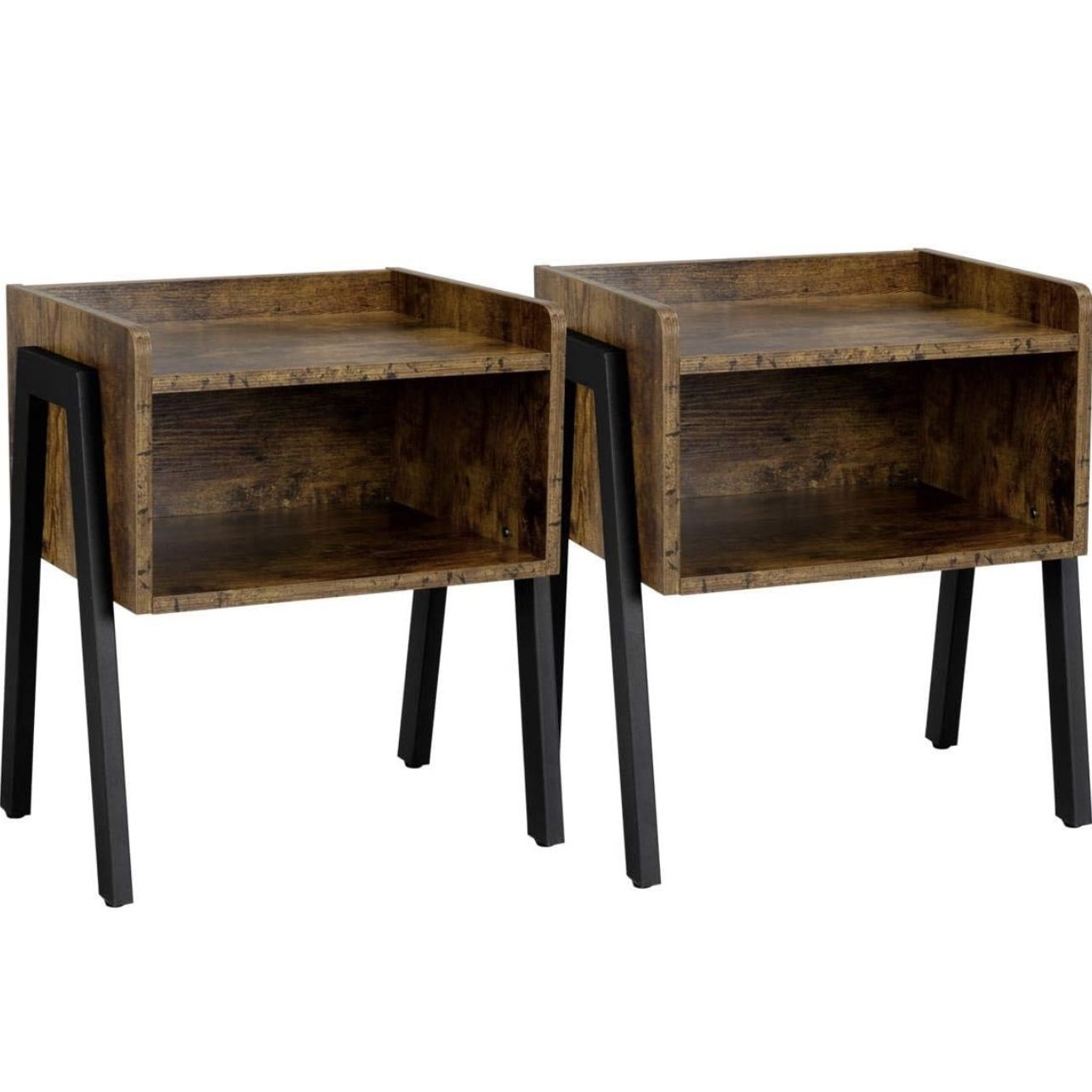End Table with Storage, Stackable End Table Living Room Set of 2, Side Table Small Coffee Table with Open Compartments, Industrial End Table for Small