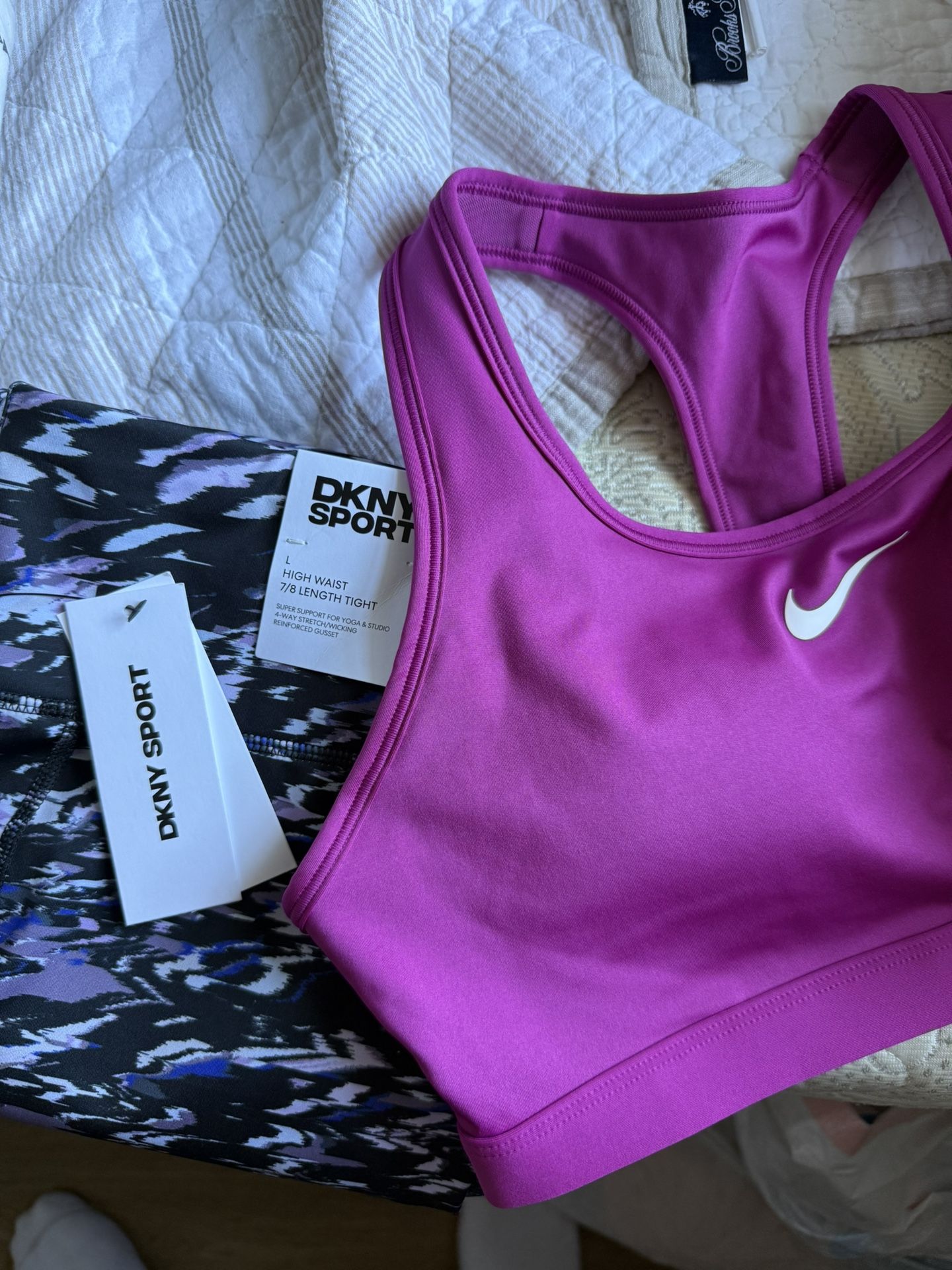 New with tags, DKNY yoga leggings - Size: Large New Nike sports bra - Size: Large (no tags) Take both for $10 Pickup in Highland Park