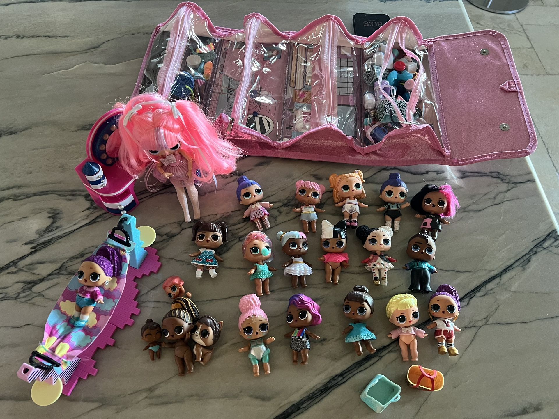 Selling a fun mixed bundle of LOL Surprise items! Everything is clean and in great shape. Perfect for any LOL fan or for adding to an existing collection. ✨ Includes: • 22 LOL Surprise dolls (various series & styles) • 1 large LOL OMG doll with pink hair • LOL accessories, outfits & shoes • LOL play pieces • Pink organizer case with multiple zip compartments