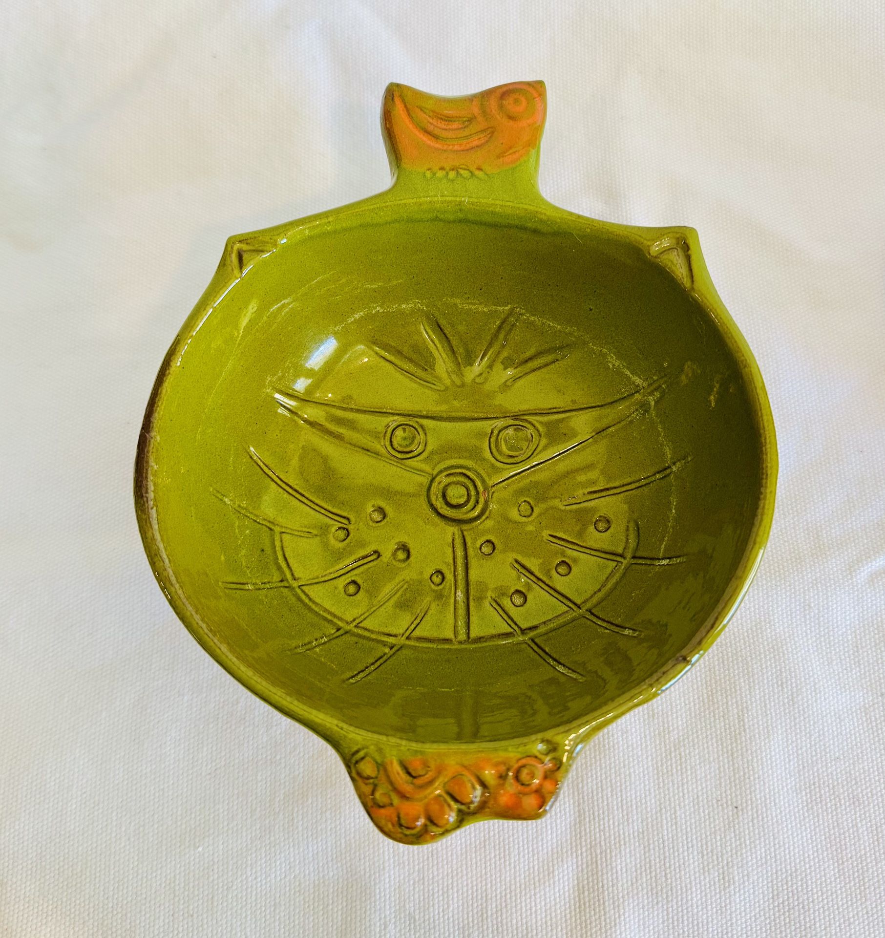 vintage 1967 Pacific Stoneware "People Lovers" cat dish, designed by B. Welsh