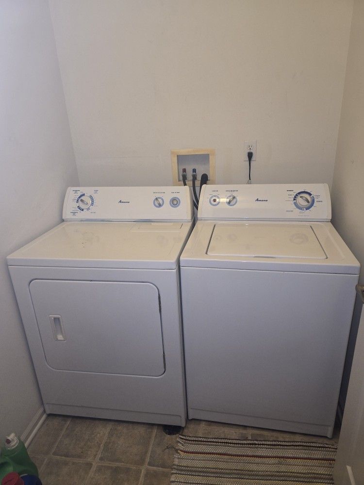 Washer washes clothes but spin cycle doesn't work, deemed unrepairable. For parts only. Electric dryer works perfectly fine. Pick up only. Serious inquiries only please.