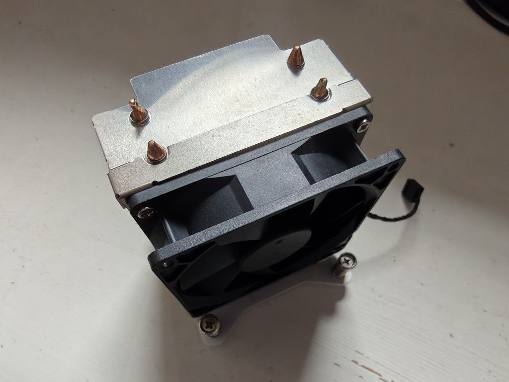 - OEM HP heatsink + fan combo for HP ENVY TE02 Series - Original PC model: HP ENVY TE02-1075t DT PC (7Z6F0AA) - Uses non-standard LGA1700 mounting bracket (included if you take the dead motherboard too); may or may not work with other LGA1700 motherboards - Good condition with minor scratches on fan and one or two very slightly bent fins (see picture); will not impact performance - Single 92mm fan setup, 4-pin fan power connector - Open to reasonable offers HP part number: M87857-001