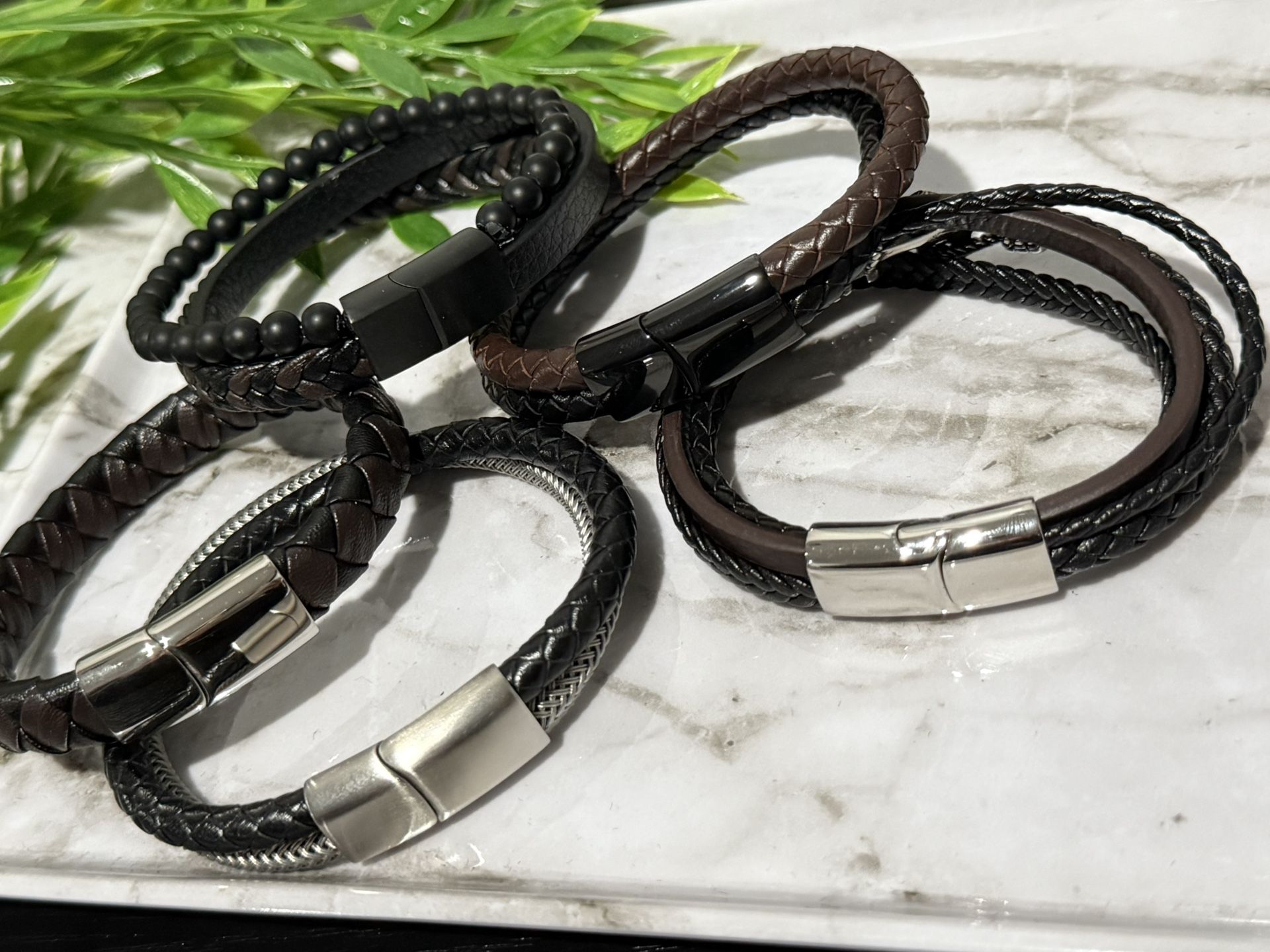 All 5 =$30 or each = $8 Leather bracelets