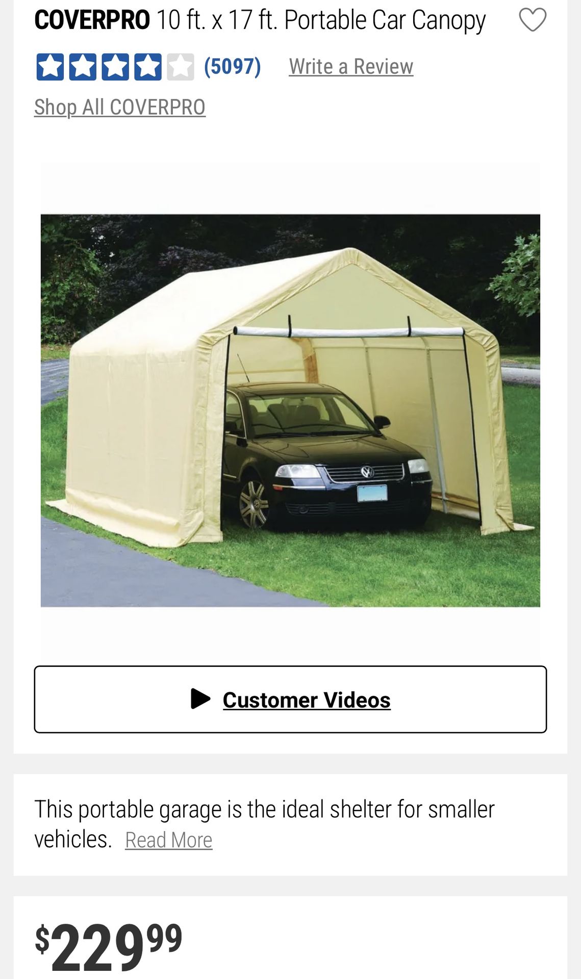 Cover pro 10 x 17 car canopy brand new inbox never opened, decided not to use locate it in lutz