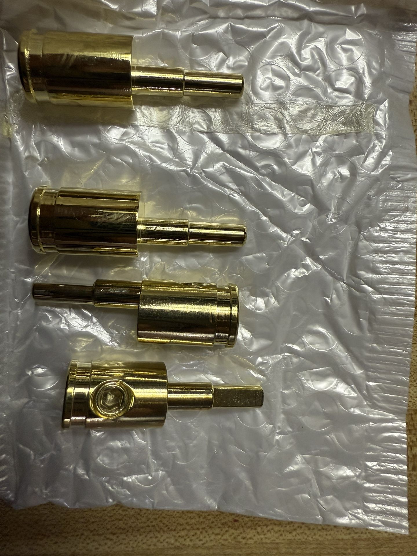 New 4pc gold plated adapters are included for the price $10 First photo shows what’s included, and diameters are in the following pictures. Several available in stock. Will delete ad when all are. These adapters are great to use with amplifiers, inverters, multi battery terminals, car audio systems. Etc With the adapter you can fit and secure big gauge wires up to 1/0 (0) gauge and secure it with no power loss to mounting bolts that wouldn’t take thicker wires than 4 gauge. Very neat way to organise your wires without compromising the power. Each adapter has a flat portion on the bar on the screwing end for better tightening