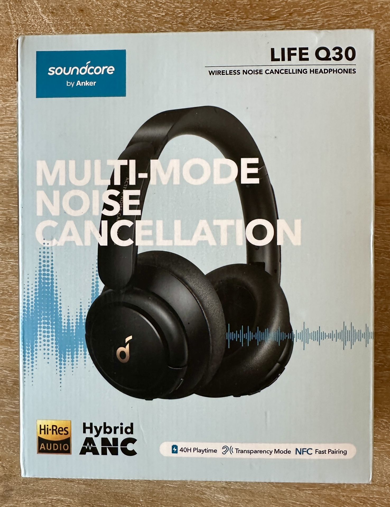 Anker Life Q30 Active Noise Cancelling Headphones. Item is new in box and includes protective case and charging & aux cables.