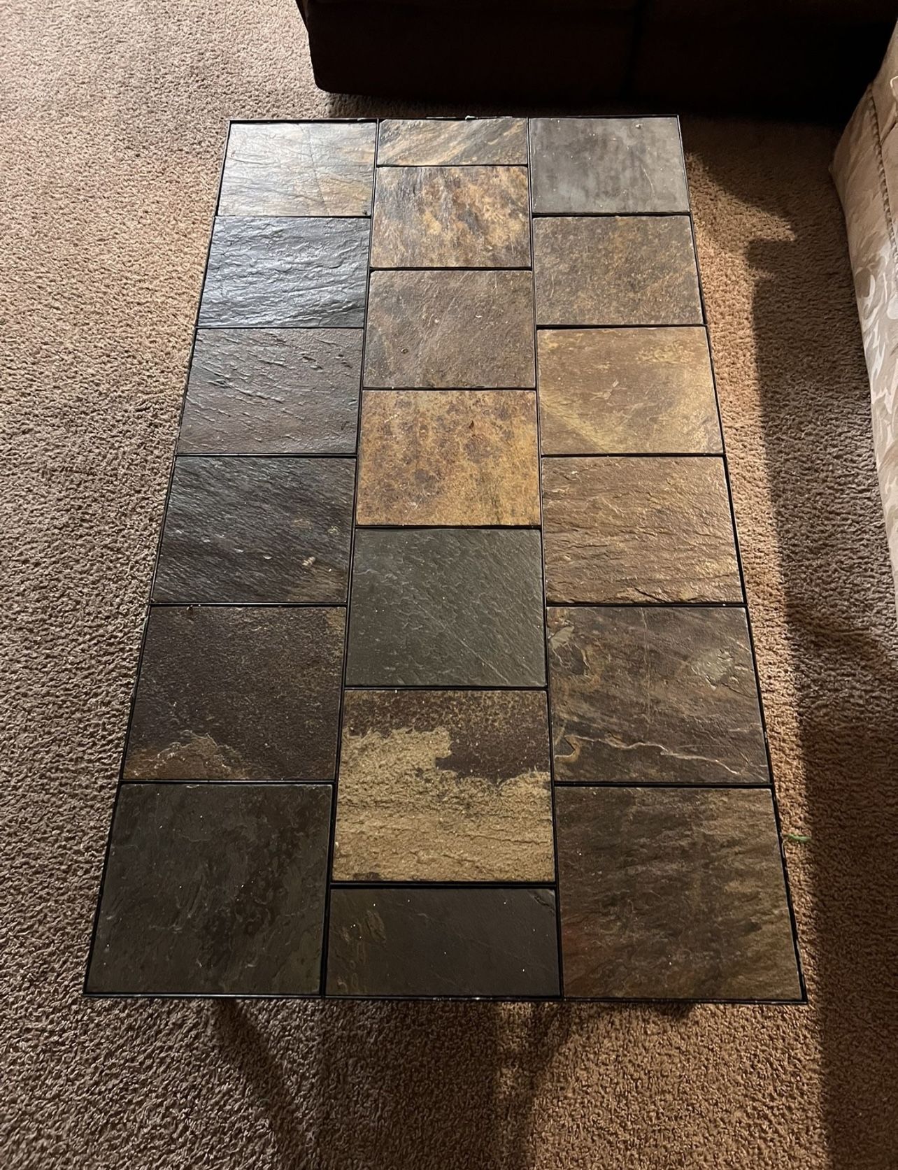 It is made out of steel for the legs and base, and the top of it is a bunch of square stones. This thing is heavy duty and won't break on you or suffer from water damage. Measures: 50" × 28" x 18" tall. Asking $50 or best offer. *Must pick up yourself, I do not have a vehicle big enough to drop off.
