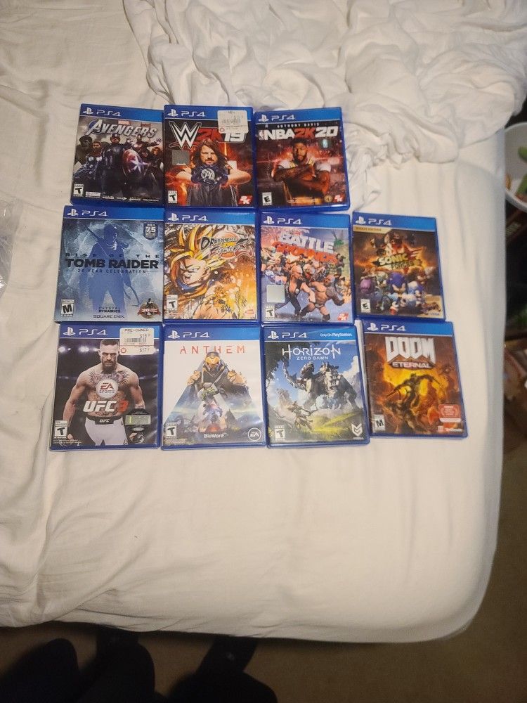 Playstation 4 Collection. You See whats there. All discs ar perfect NO scratches, great variety or gameplay. Stunning graphics. HOURS AND HOURS of endless fun.