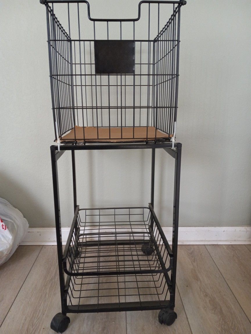 Mobile File Cart Two Wire Pull Out Drawers and Wire Basket