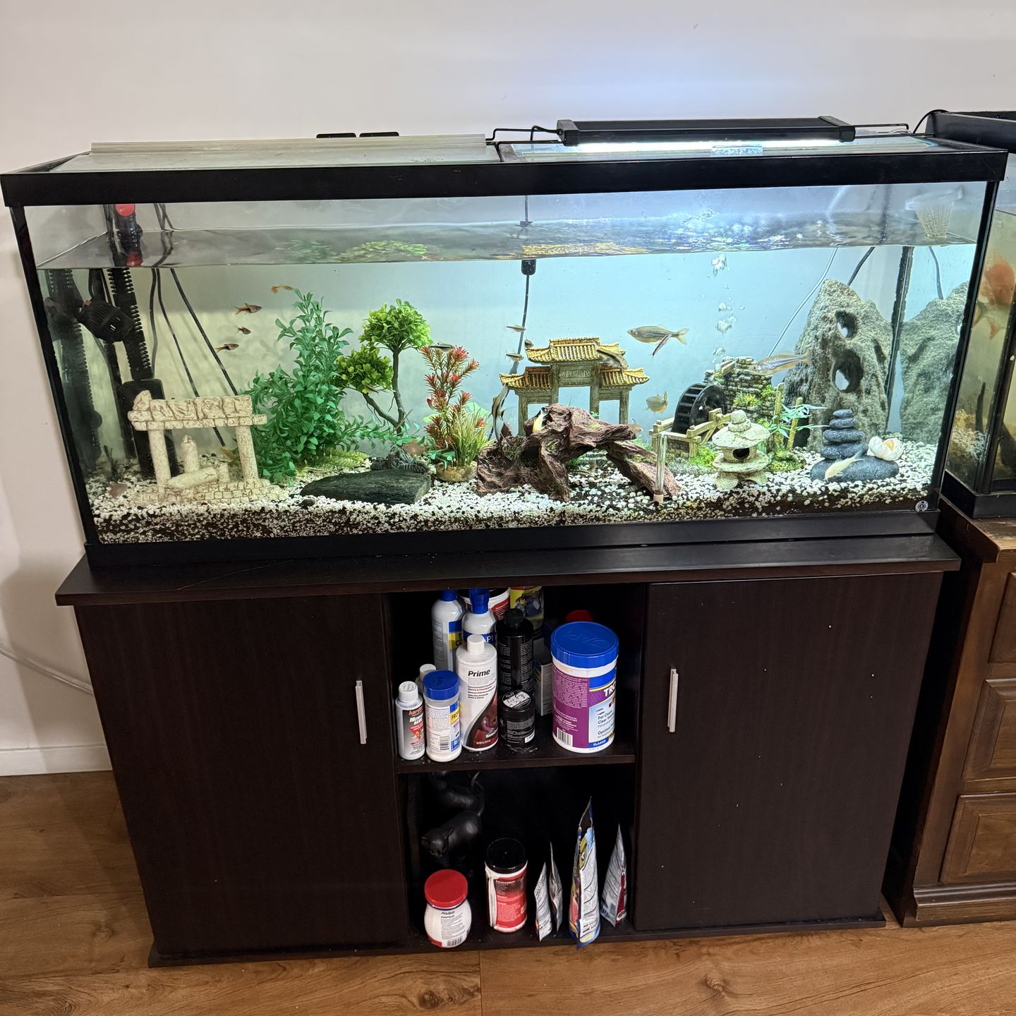 55 Gallon Fish Tank + Stand + Filter & Light – $150