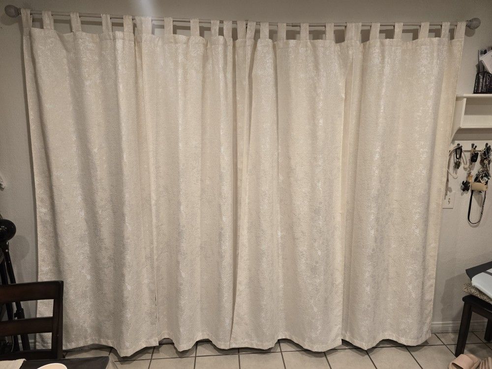 38"W x 84"L I have 4 panels All 4 x 15 dolars Cortinas tengo 4 paneles Miden 38 de ancho y 84 de largo