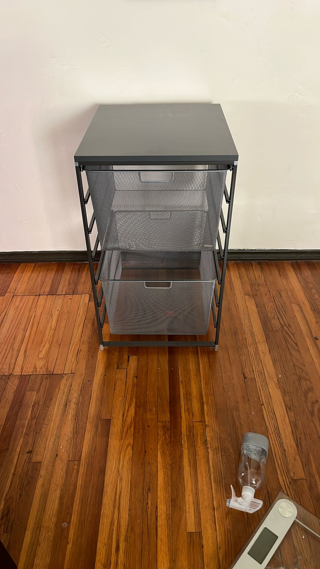 From the container store. Great condition. Includes to 2 three runner deep drawers. Has room to fit another single runner drawer. The runners are the color graphite, the drawers are platinum