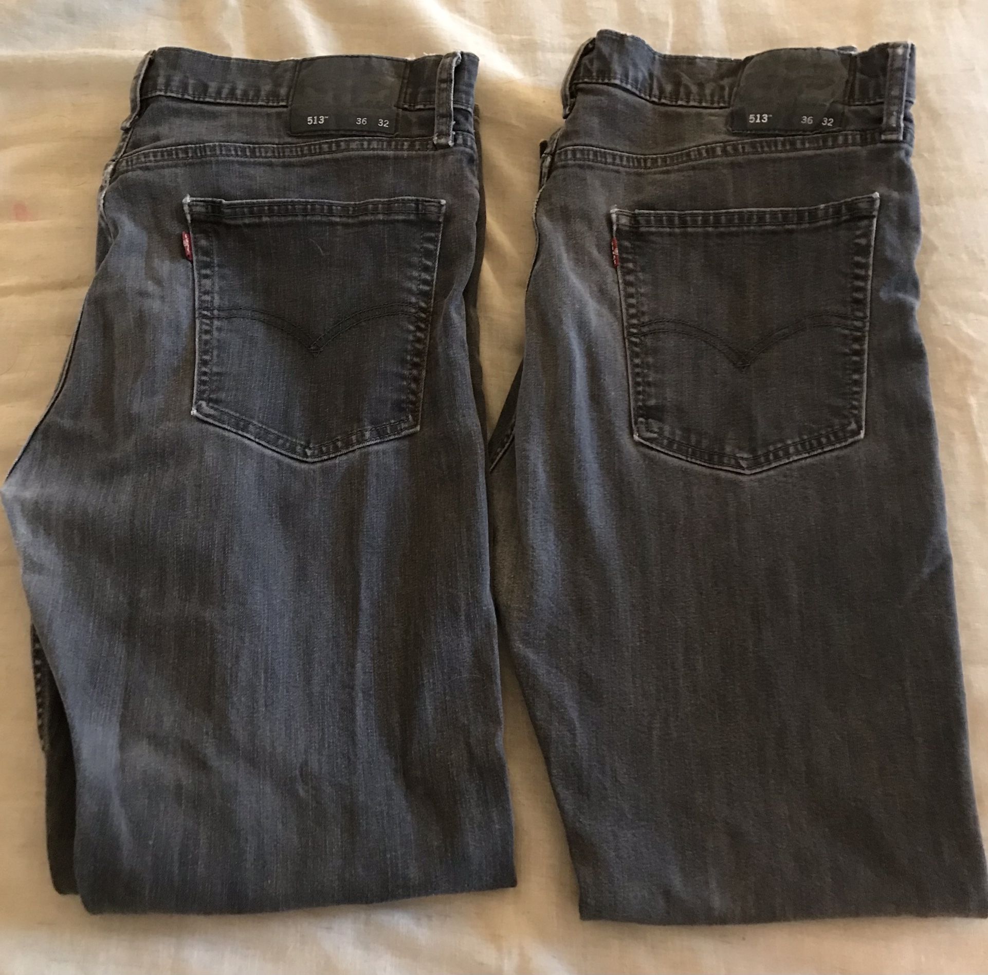 2 Pairs of LEVI’S 513 Men’s Straight Fit Stone Washed Black Denim Jeans 36x32