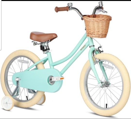 16 Inch Girls Bike for 4-9 Years Old Toddlers and Kids, Kids Bike with Training Wheels, Basket, Dual Brake, Retro Style Children Bicyle