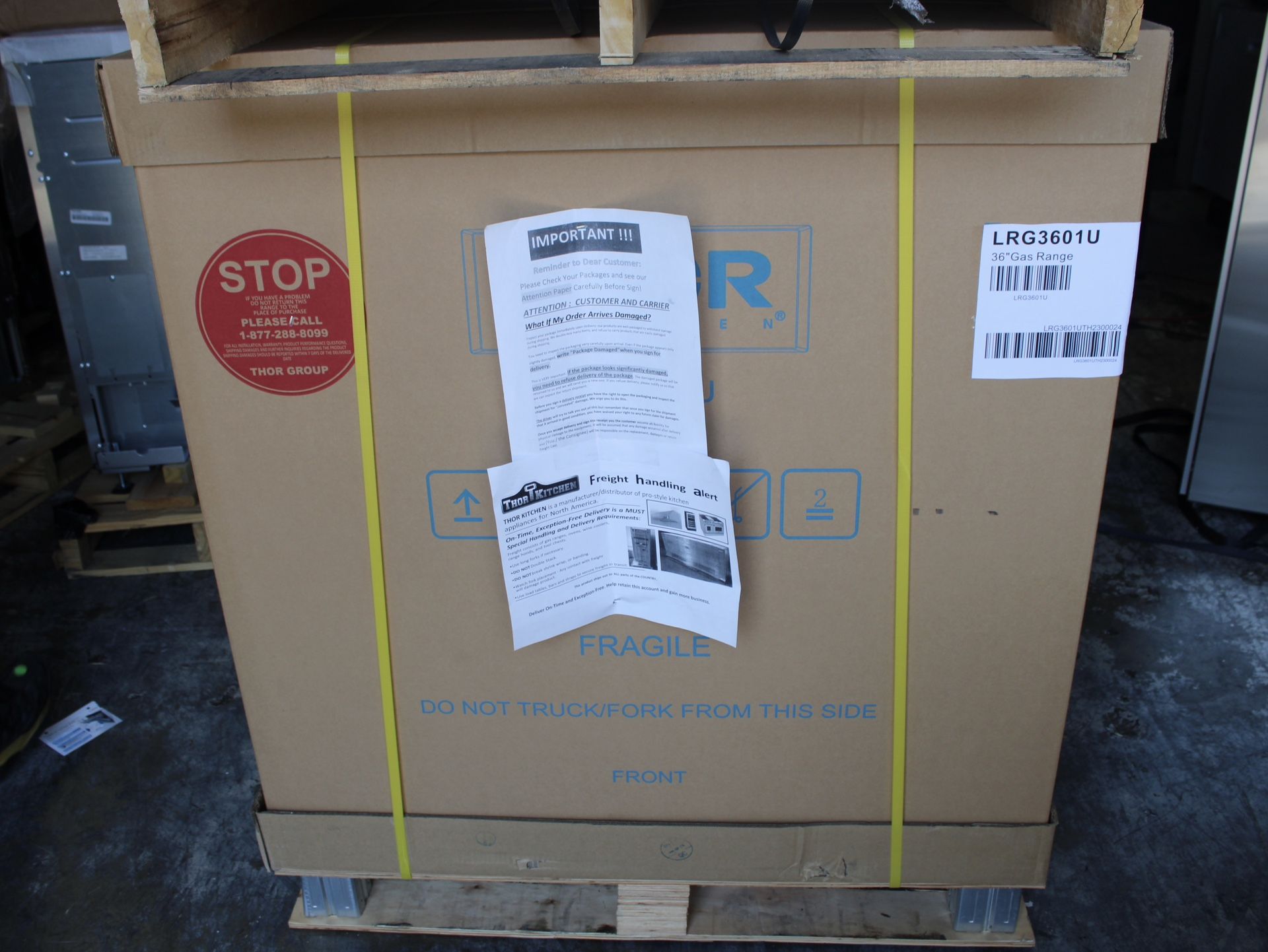 Thor Kitchen 36 Inch Professional Gas Range LRG3601U New in Box Features: Black Porcelain Drip Pan for easy surface cleaning Heavy Duty Continuous Cast Iron Cooking Grates Black ABS Knobs 6.0 cu.ft Oven Capacity White Flakes with Gray Background Porcelain Oven Interior 1 x Halogen Lights Commercial Convection Fan Three layers glass window Storage drawer at bottom Online Price $2159
