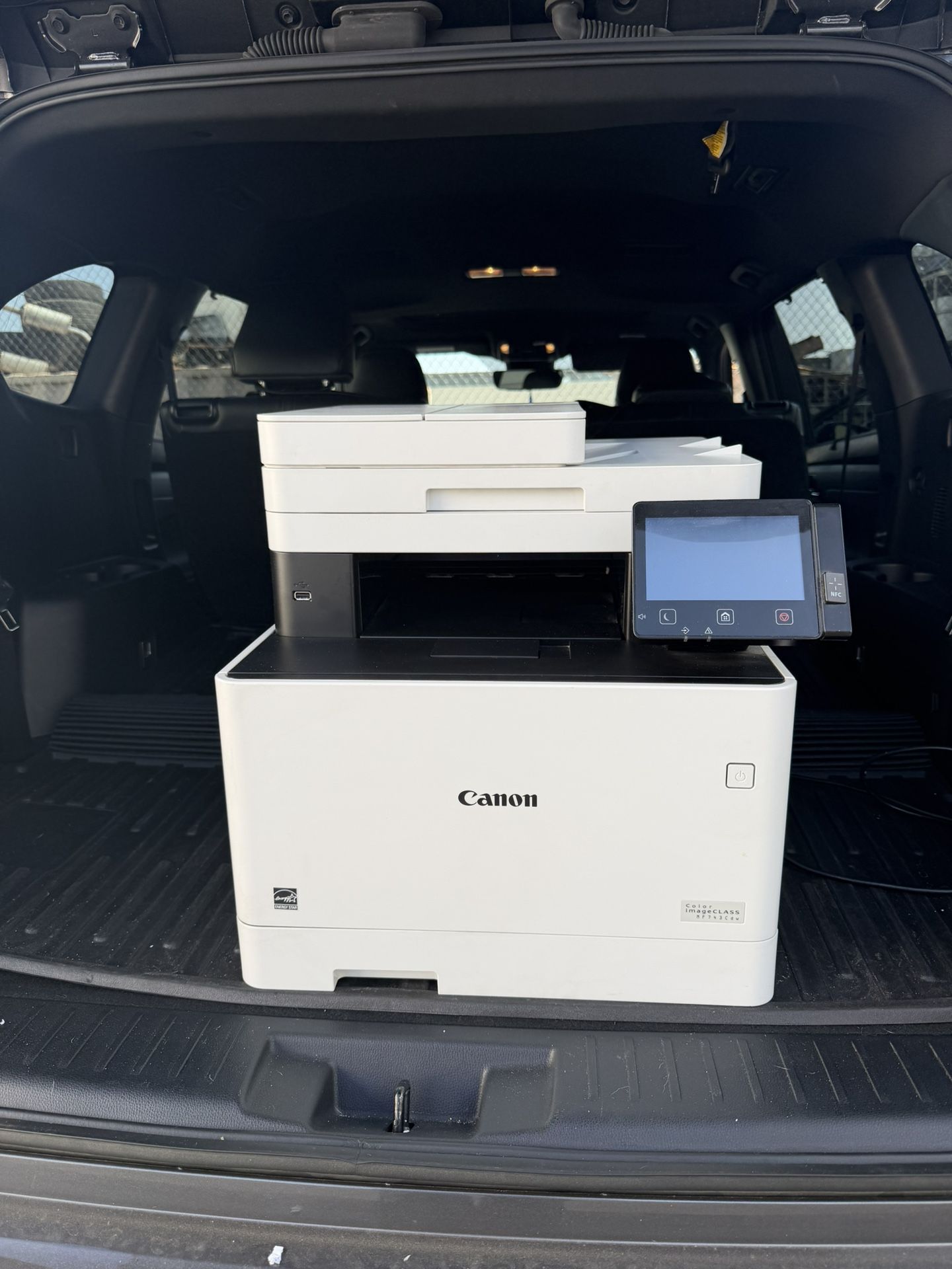 Canon MF743Cdw Wireless Color Laser Printer – All-in-One Barely used printer, basically brand new. I’m selling my Canon MF743Cdw all-in-one color laser printer. It prints, scans, copies, and faxes and is fast (up to 35 ppm) with clean, professional-quality output. It has automatic double-sided printing, a 5” color touchscreen, and a 50-sheet auto document feeder, so it’s super easy to use. Works wirelessly or wired (Wi-Fi, Wi-Fi Direct, Ethernet, USB) and supports AirPrint, Canon PRINT, and Mopria. Handles envelopes, labels, and heavier paper with no issues. Great for a home office or small business. Includes starter toner cartridges, power cord, and fax cord. Printer is ready to go. $350 OBO
