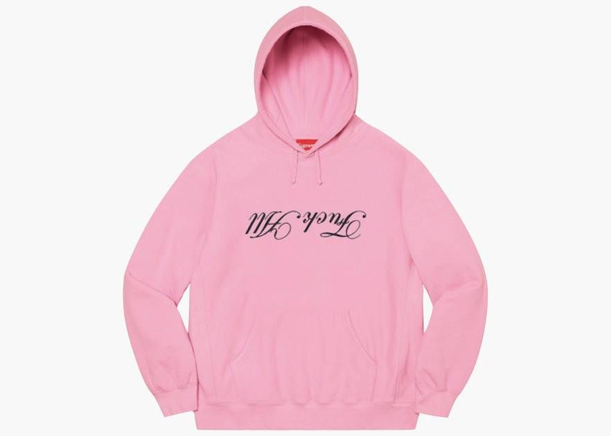 Pink supreme hoodie designed by Jamie reid designer of Sex Pistols covers