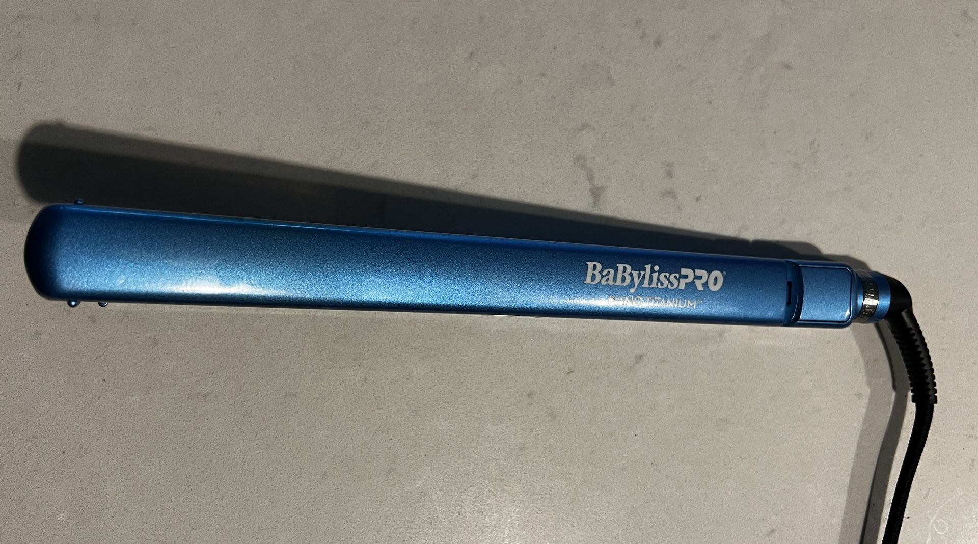 Excellent condition, pre-owned Babyliss flat iron. Works perfectly. Adjustable heat setting, swivel cord, dual voltage, and gentle on hair. Comes with heat protectant glove.