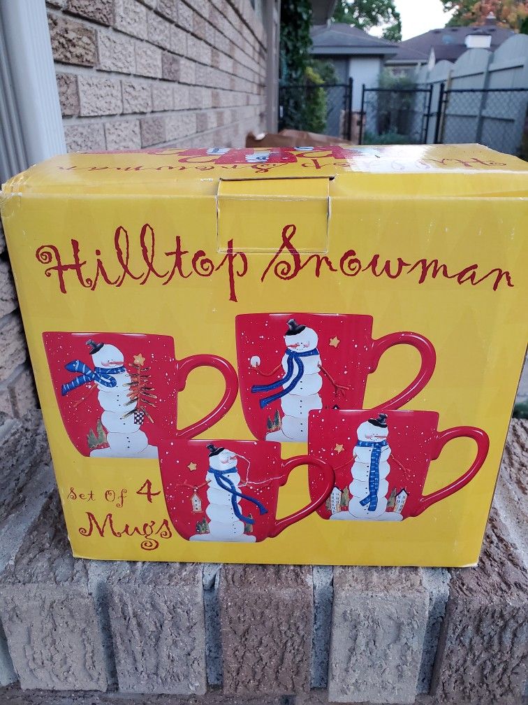 Hilltop Snowmen Mug Set Or Dessert Plates, Each Set