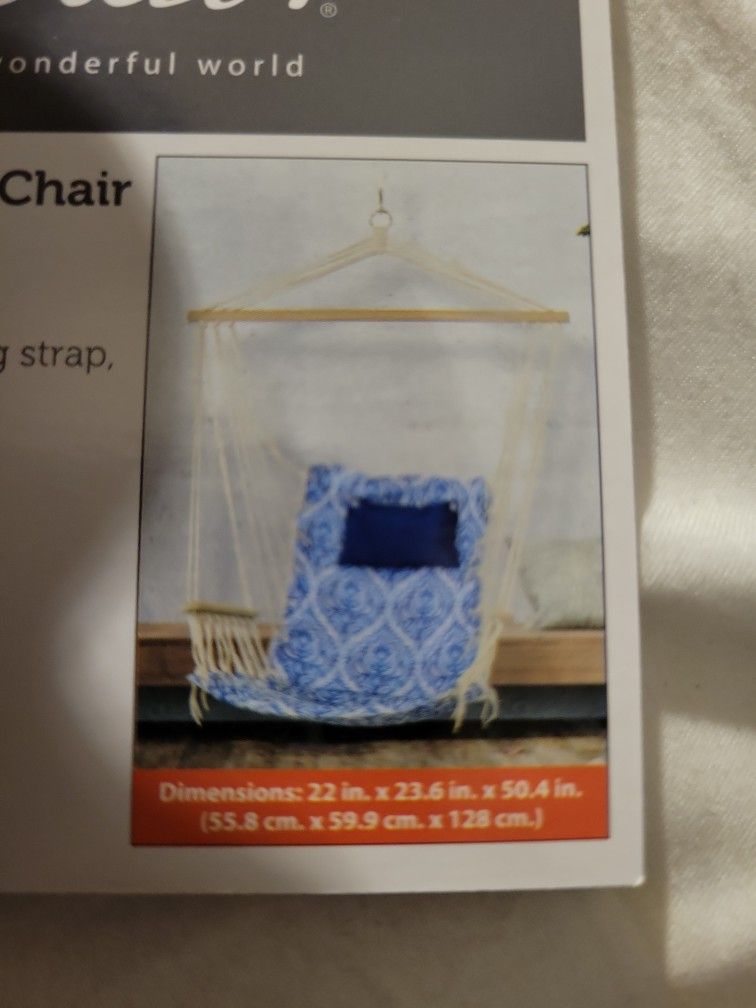 New in cloth bag, hanging swing hammock chair for outside porch use, blue