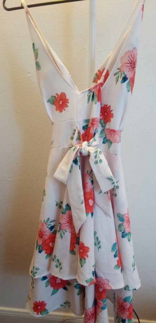 Vestido hermoso con flores colores vivos talla ajustable,de hombros y cintura