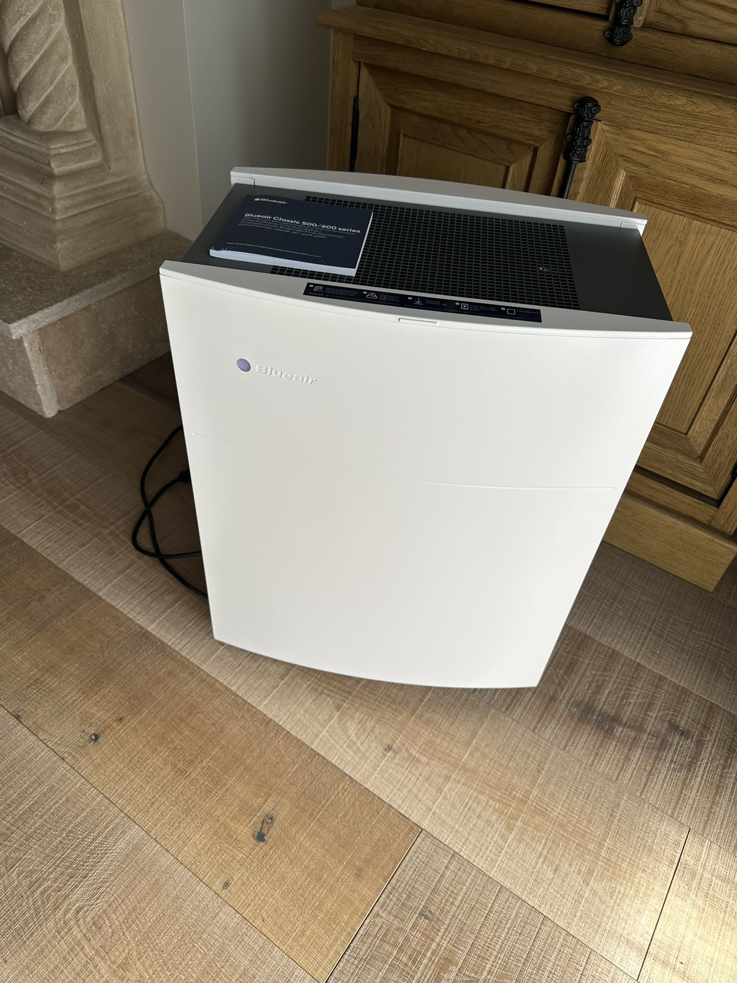 The WiFi enabled Blueair 680i air purifier brings clean, energizing air to spacious bedrooms, living rooms or any big room that's up to 1550 sq feet. Battle allergies, asthma and hay fever with HEPAsilent technology which leverages electrostatic charge and mechanical filtration to deliver true HEPA performance capturing 99.97% of air airborne pollutants including dust, mold, pet dander, pollen. - small crack as shown in photo - needs a new filter - smoke-free household