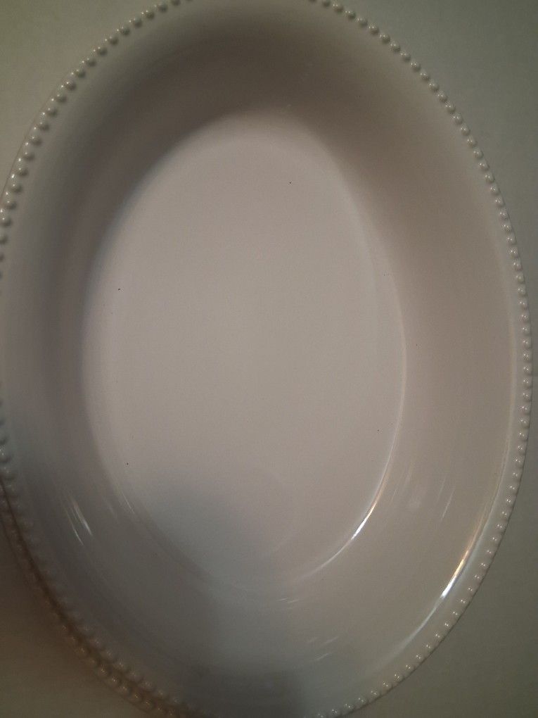 Large platter measures 18" L x 13" W, Matching bowl measures 16" L x 12" W. In perfect condition. Never used. White.