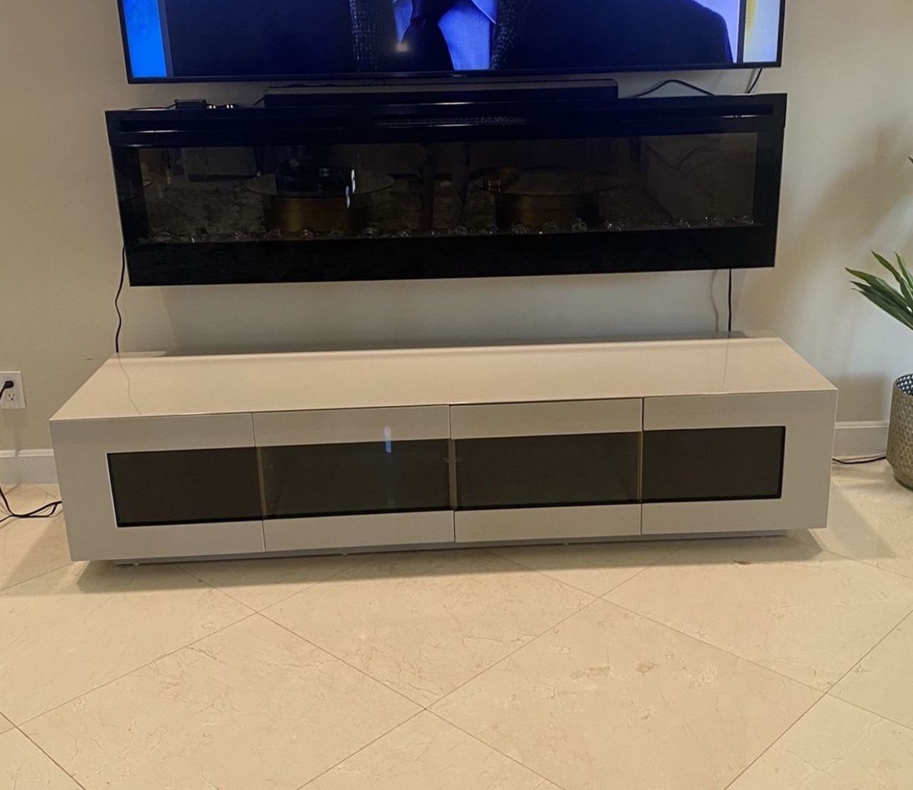 Gray acrylic tv console . It a very nice console I paid over 1k for it and now I’m getting rid of it because I got a custom wall unit built out .