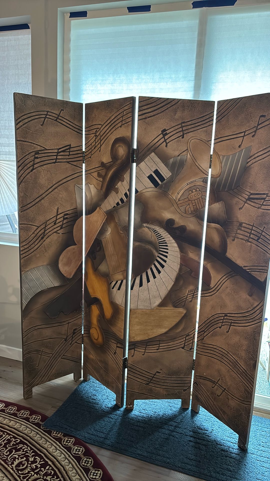 A real “show-stopper”, strikingly attractive musical design. Four-panel (16x 72 x each panel). Moving sale. $200 or best offer! Perfect condition!