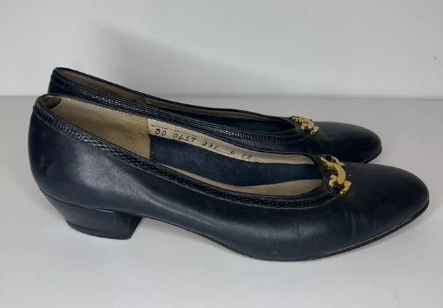 Salvatore Ferragamo Sz 6 Black Leather Gancini Logo Block Heel Pumps