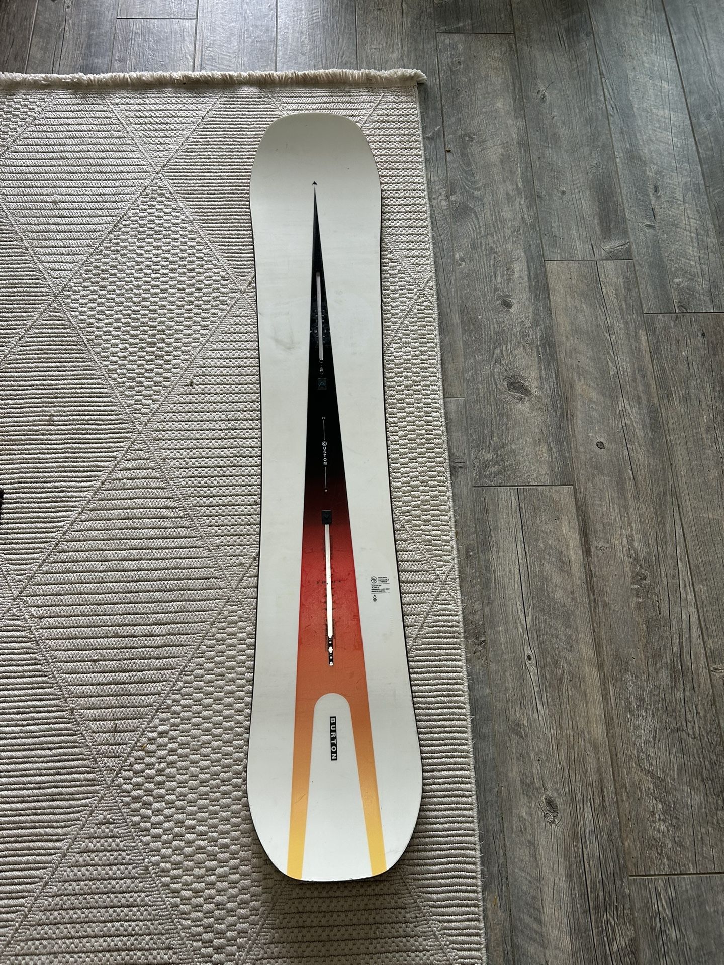 Bought this brand new last season for $575. Only ridden about 13 times. Super fun playful board. Burton Custom with Flying V shape. Catch free riding, easy to butter and good pop. Super fun board. 156cm.