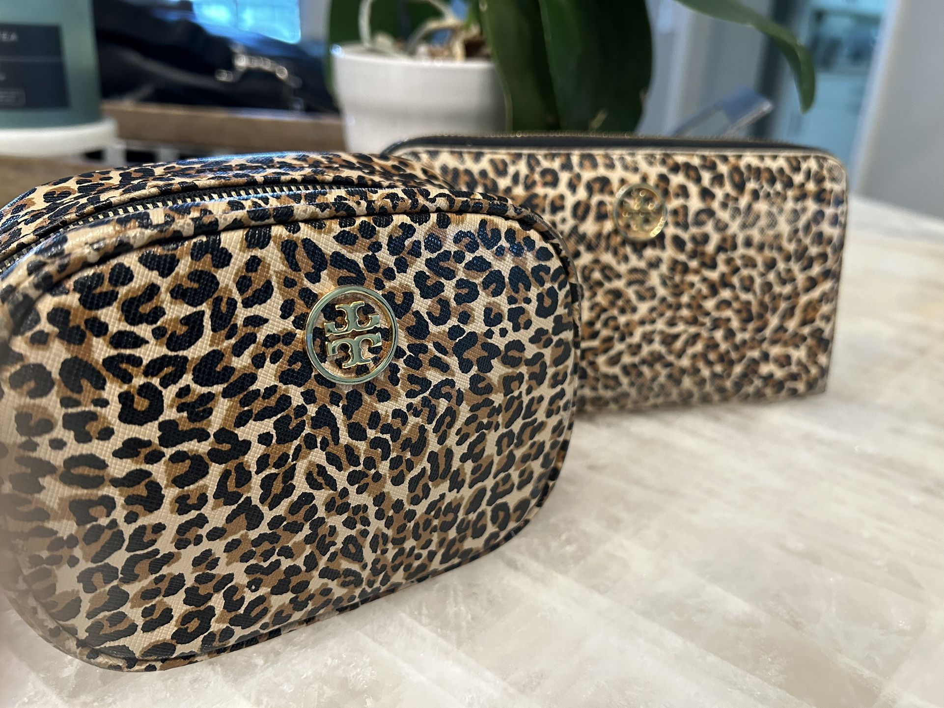TORY BURCH LEOPARD WALLET AND MATCHING G MAKEUP CASE