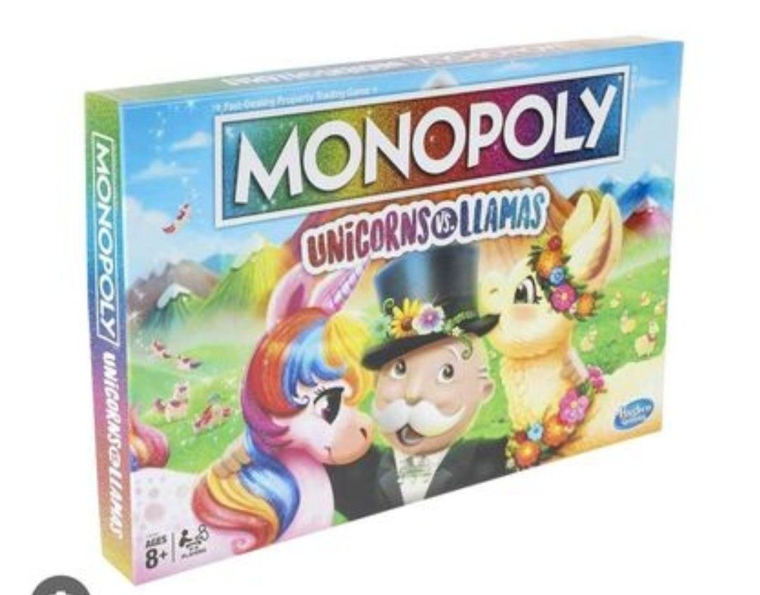 $10.00 Great Christmas gift Monopoly Unicorns vs. Llamas Game: Inspired by the lively rivalry between llamas and the mythical unicorn, the Monopoly Unicorns vs. Llamas game can be a fun game for animal lovers everywhere. This edition of the Monopoly board game is designed to be played in teams. Join Team Unicorn or Team Llama and move CROSS POSTED LOCATION: Monaca PORCH PICK-UP NO HOLDS FIRST COME FIRST SERVE