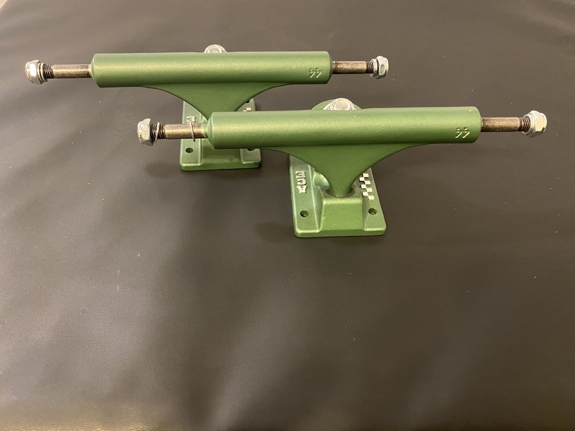 Brand new army green Ace Trucks. Size 44. They fit best on size 8-8.5 skateboard. $50 OBO