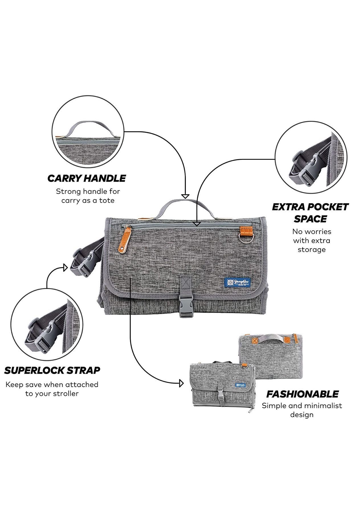 YazzyBoa Portable Diaper Changing Pad, Travel Changing Mat - Grey