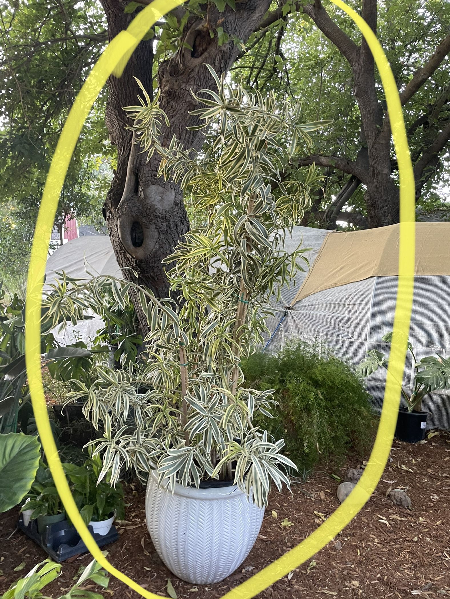 Huge 7 to 7.5ft (18” pot) Song of India, exact plant, white ceramic pot not included; 95820