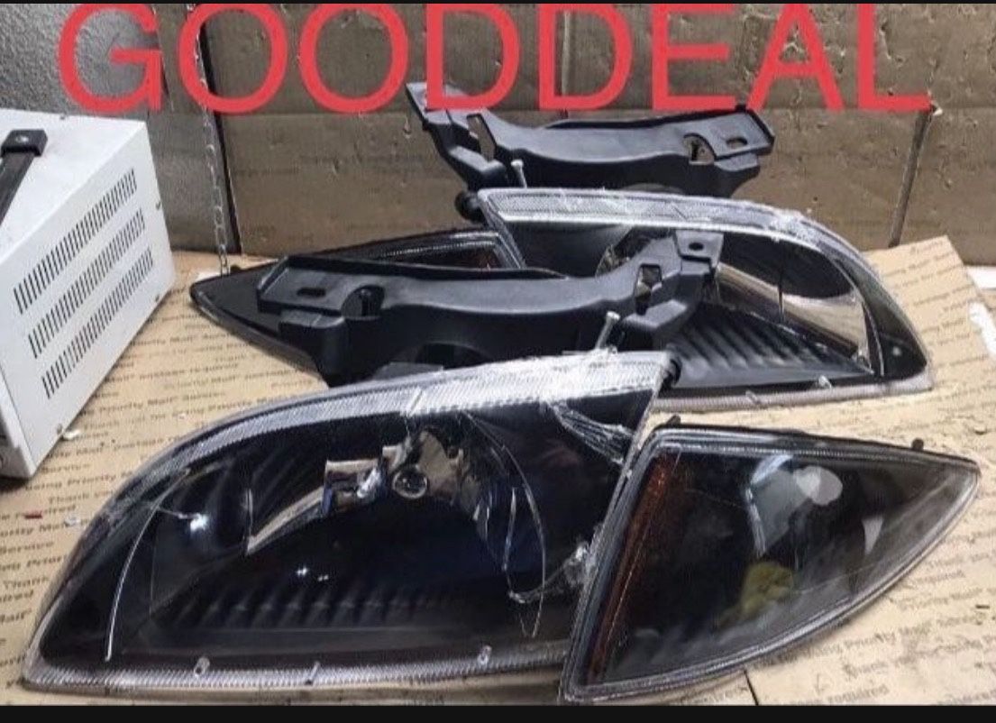 #28 Fit 00-2002 Chevy Chevrolet Cavalier Black Halogen Headlight Head Light Set Pair