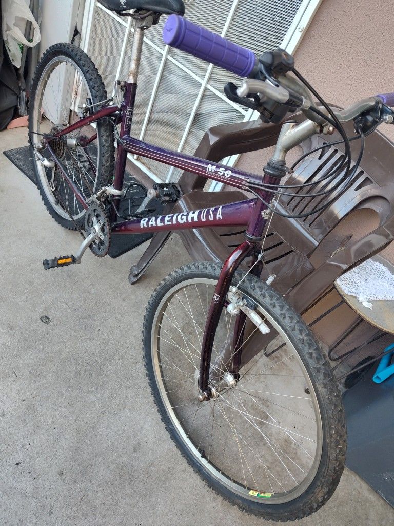 It's a used RALEIGH USA M-50 MOUNTAIN SPORT 21spd in good condition, the gears work, brakes stop, paint is good and it's ready to ride.. I'm asking $65 so if you're interested HMU I'm in the Uptown Whittier area and it's pick up only