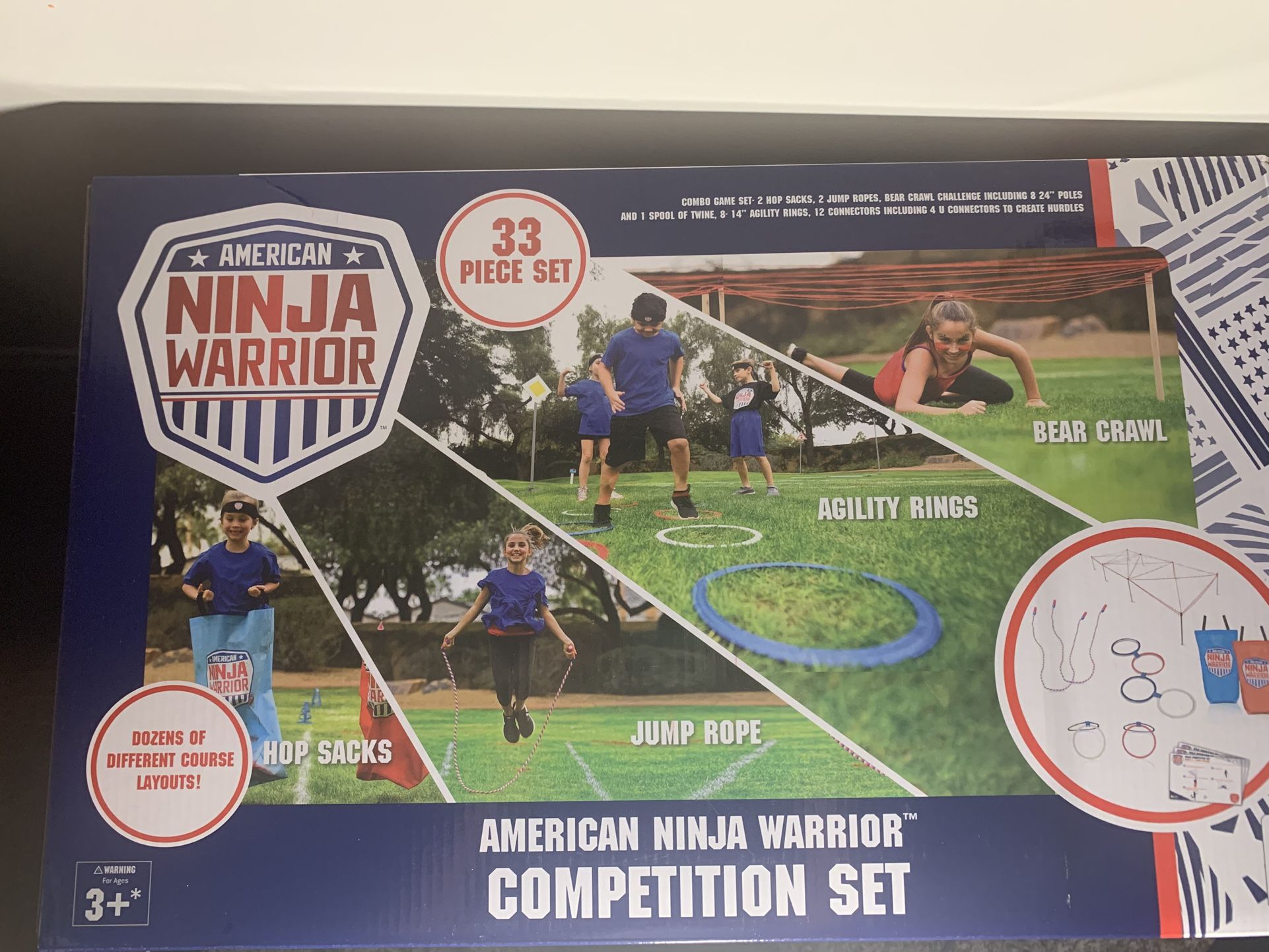 American Ninja Warrior 33 piece competition set for ages 3+ and is completely sealed. Great gift for your kids. Comes with Hop Sacks, Jump Rope, Agility Rings, and Bear Crawl. I am willing to wrap it beforehand if you want to give as a gift just dm me. Price is negotiable.