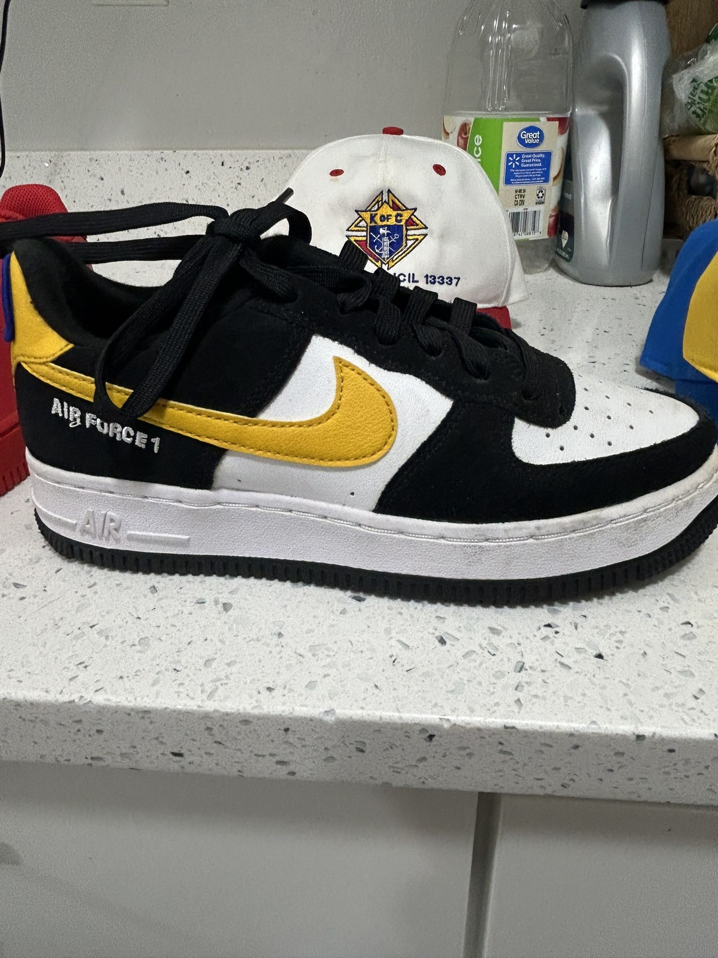 Used Air Force 1 size 5 boys . No box. Can ship with a cost of $10 for tracking number by mail