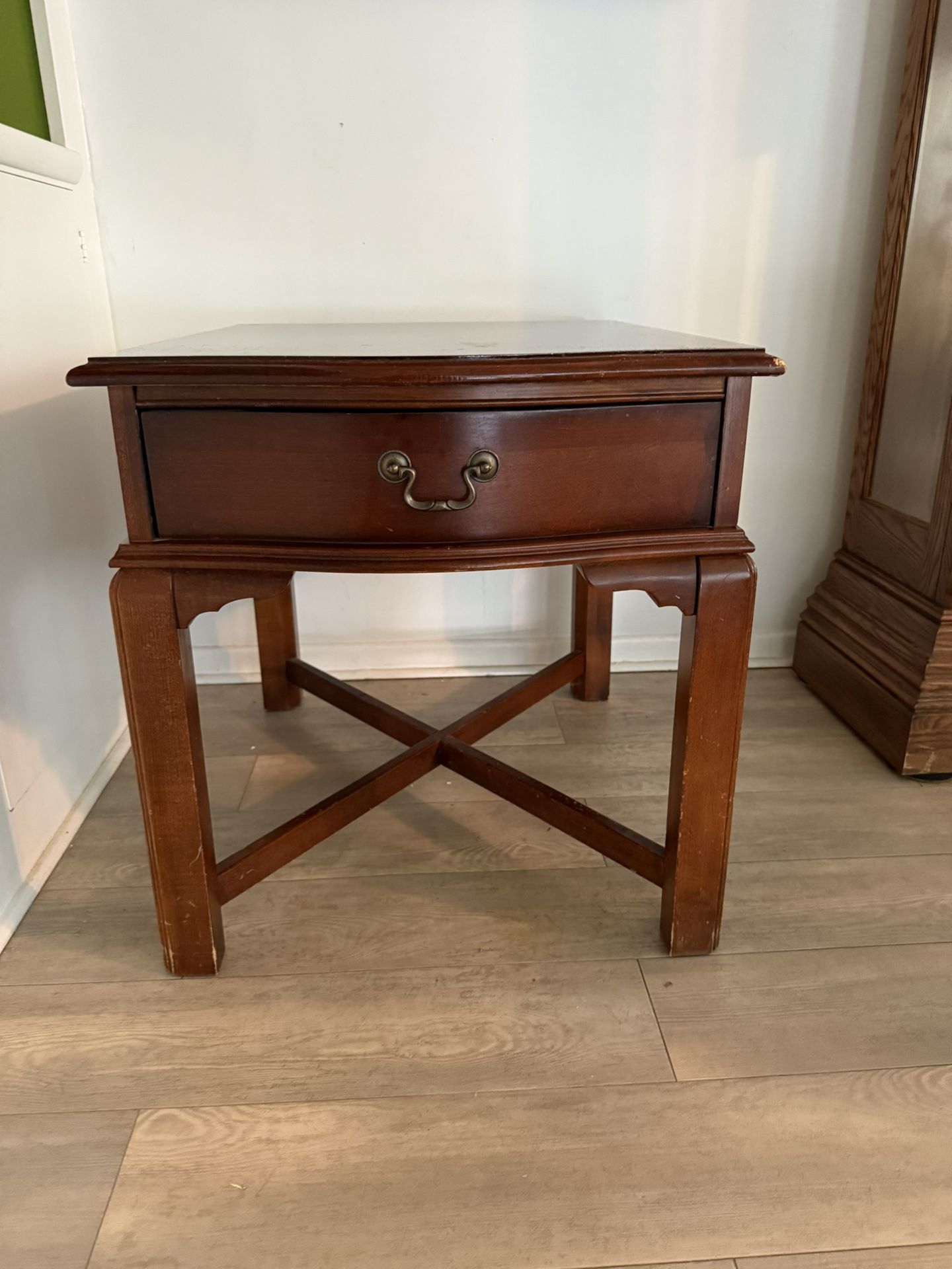This item for sale is a beautiful wooden end table. In good condition. There is one, NOT a pair, sorry. Measurements: - Hight = 23.5” - Width = 22” - Depth = 27”
