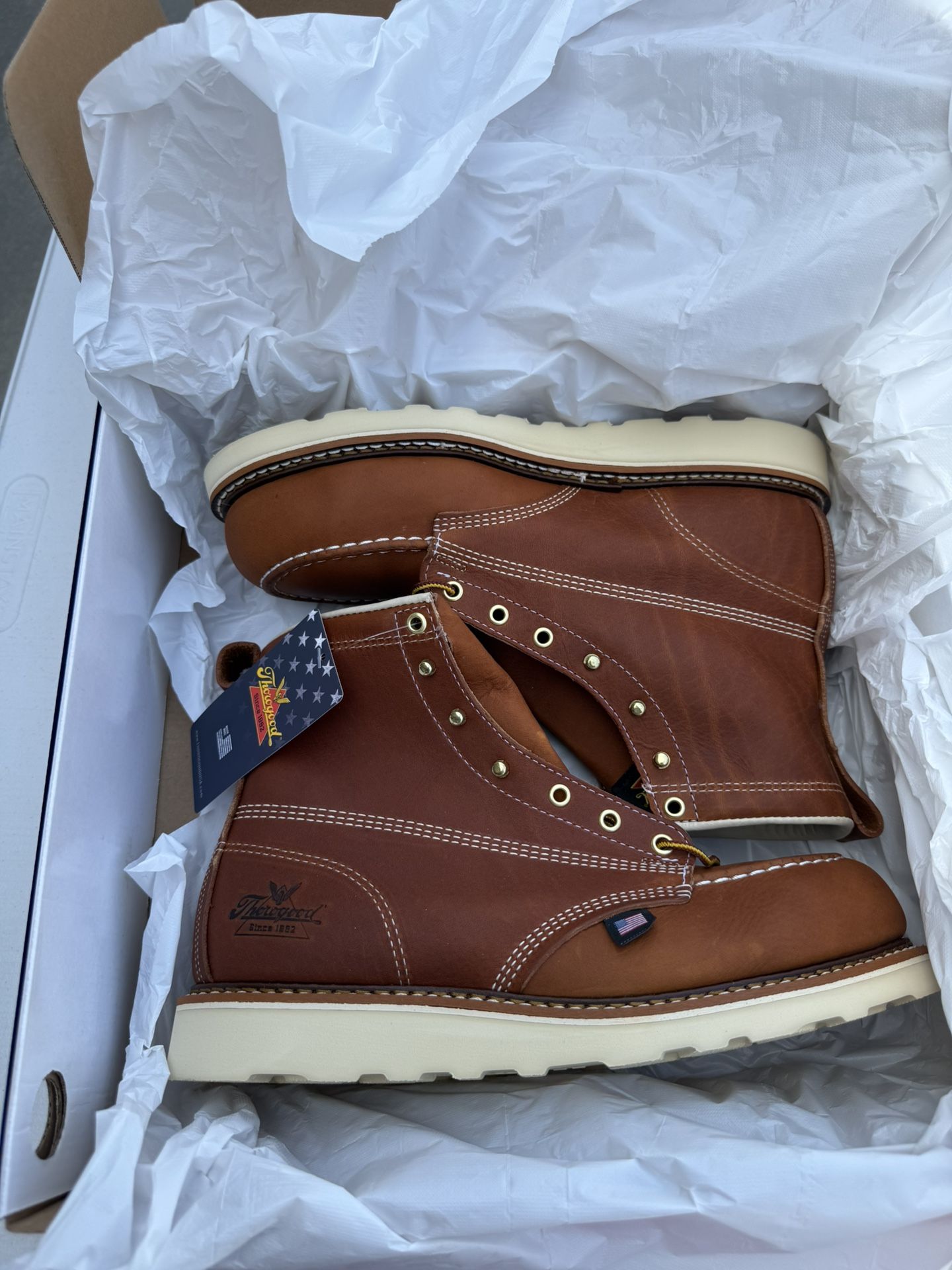 BRAND NEW Thorogood steel toe work boots 6” tobacco American heritage series Made in USA Real leather boots SIZE 10 steel toe boots Slip resistant Oil resistant EH electrical 170 firm cash or Zelle none negotiable Work boots Steel toe boots Botas de casquillo