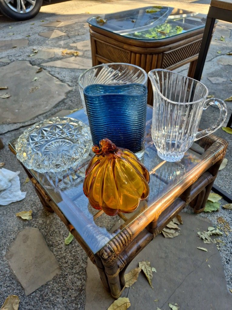 Blown blue glass vase and an amber glass pumpkin! SET of 2: $45