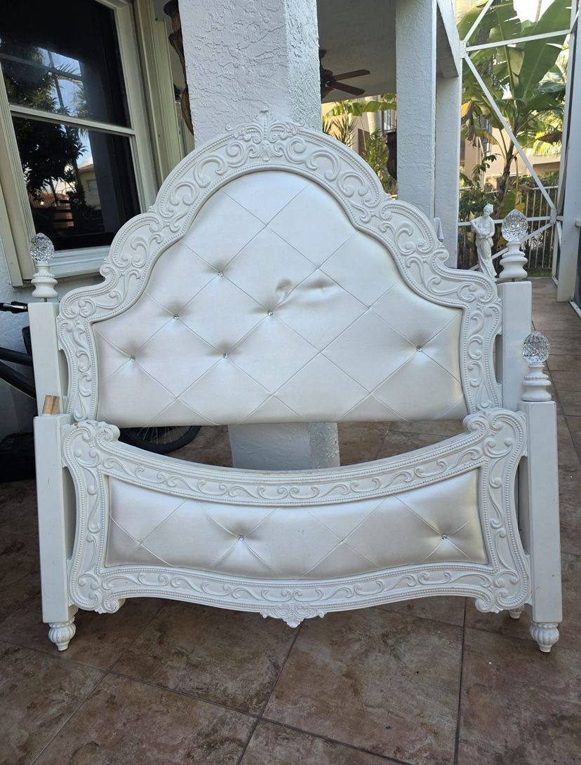 Ashley Princess Bedroom white upholstered bed frame with a tufted headboard and footboard