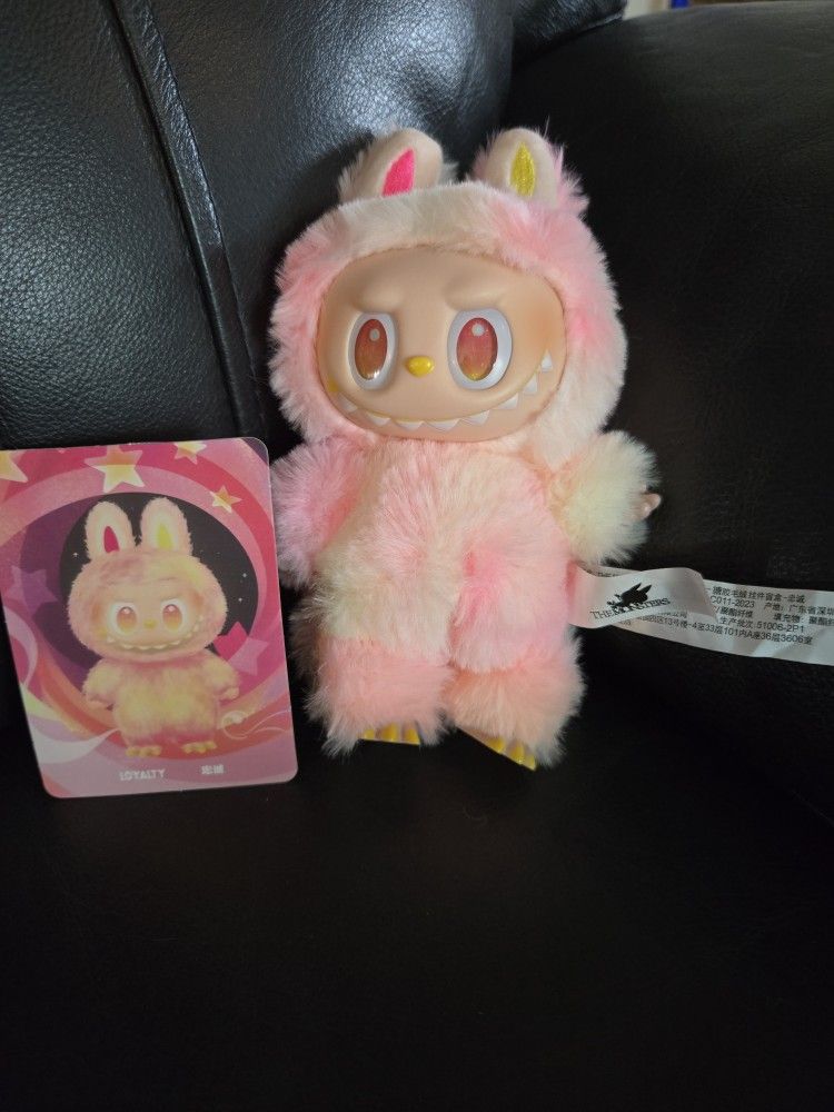 Labubu Big Into Energy LOYALTY Pink Plush Toy Keychain