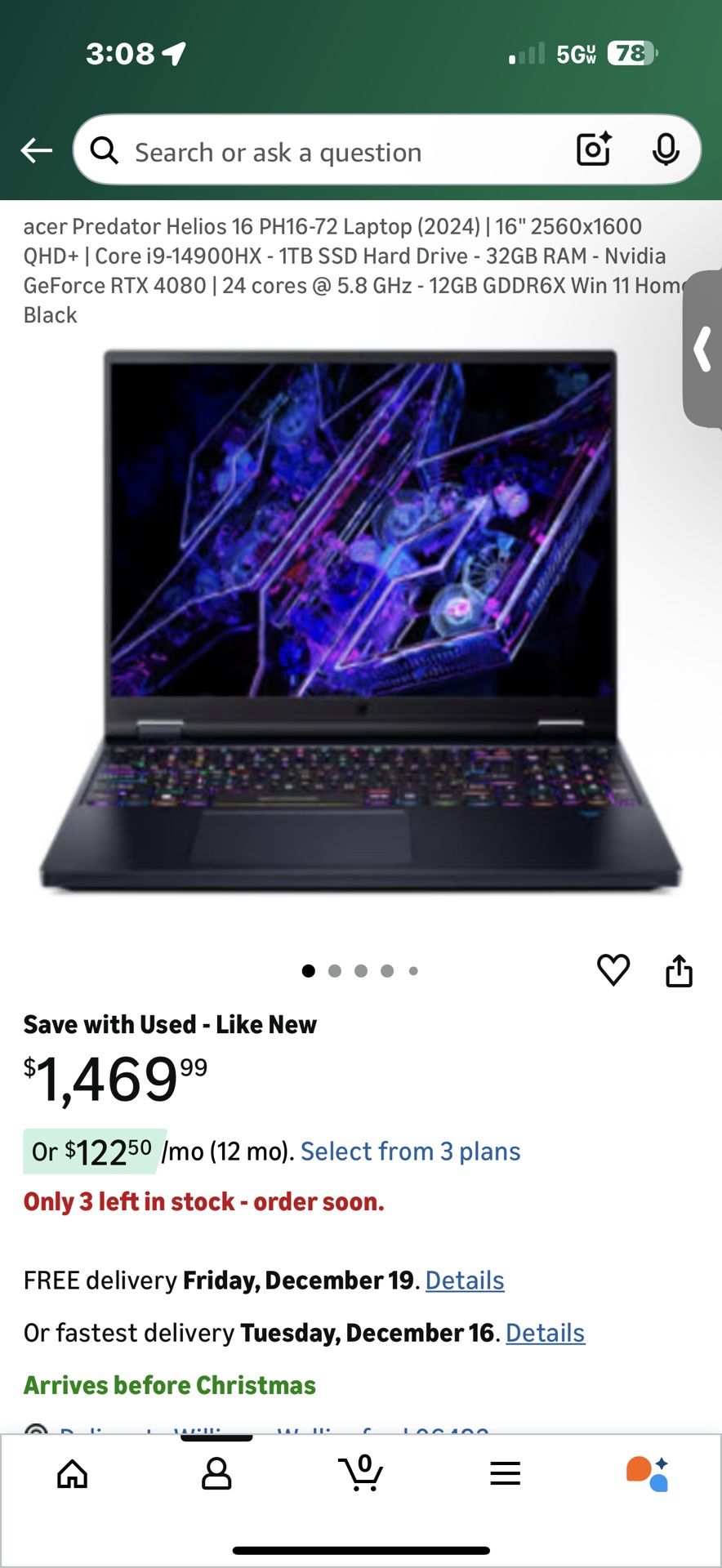 2024 Acer Helios Predator 18 Inch Gaming Laptop PH18-72 Rtx 4080 - 32gb Ram Ddr5