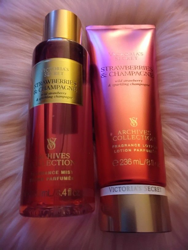 Strawberries and champagne 2pc set by Victoria secret, lotion and body spray.