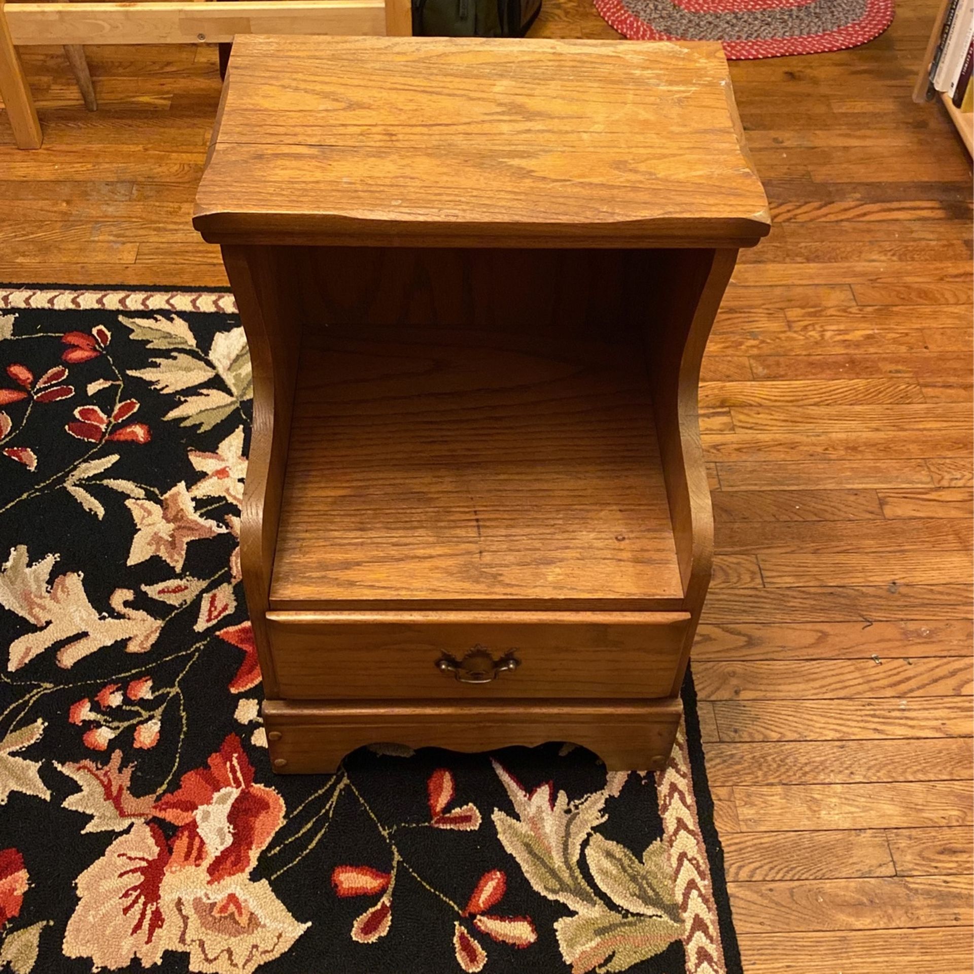 Solid nightstand in good condition. It's pretty heavy so I assume it's made from solid wood. 14.5" depth 17" width 24" height $60 OBO Make an offer and let's make a deal. Thanks!